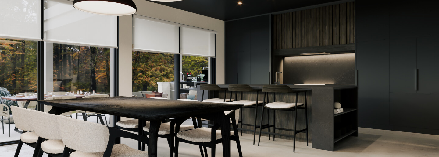 Les Entreprises Philippe Denis se sont alliés avec le cabinet d’architecture intérieur Focus Boîte Créative pour vous offrir un lieu de vie empreint de beauté, de raffinement et de commodité, tout en respectant la nature et le développement durable de la région.